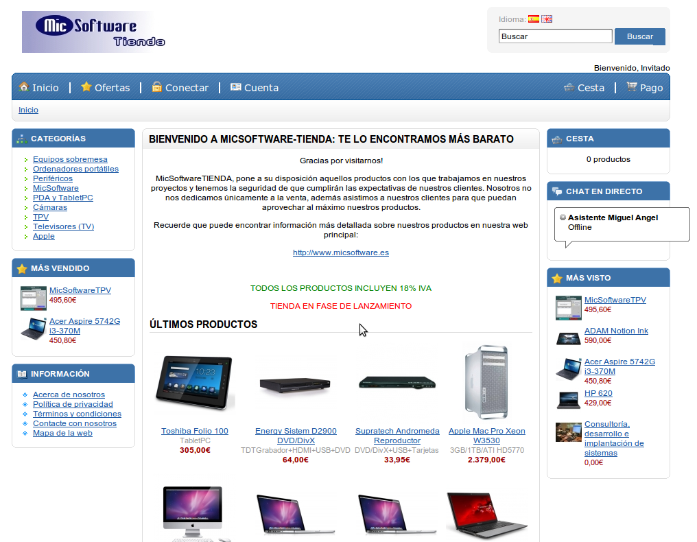 Un ejemplo de tienda lo podemos encontrar en http://tienda.micsoftware.es